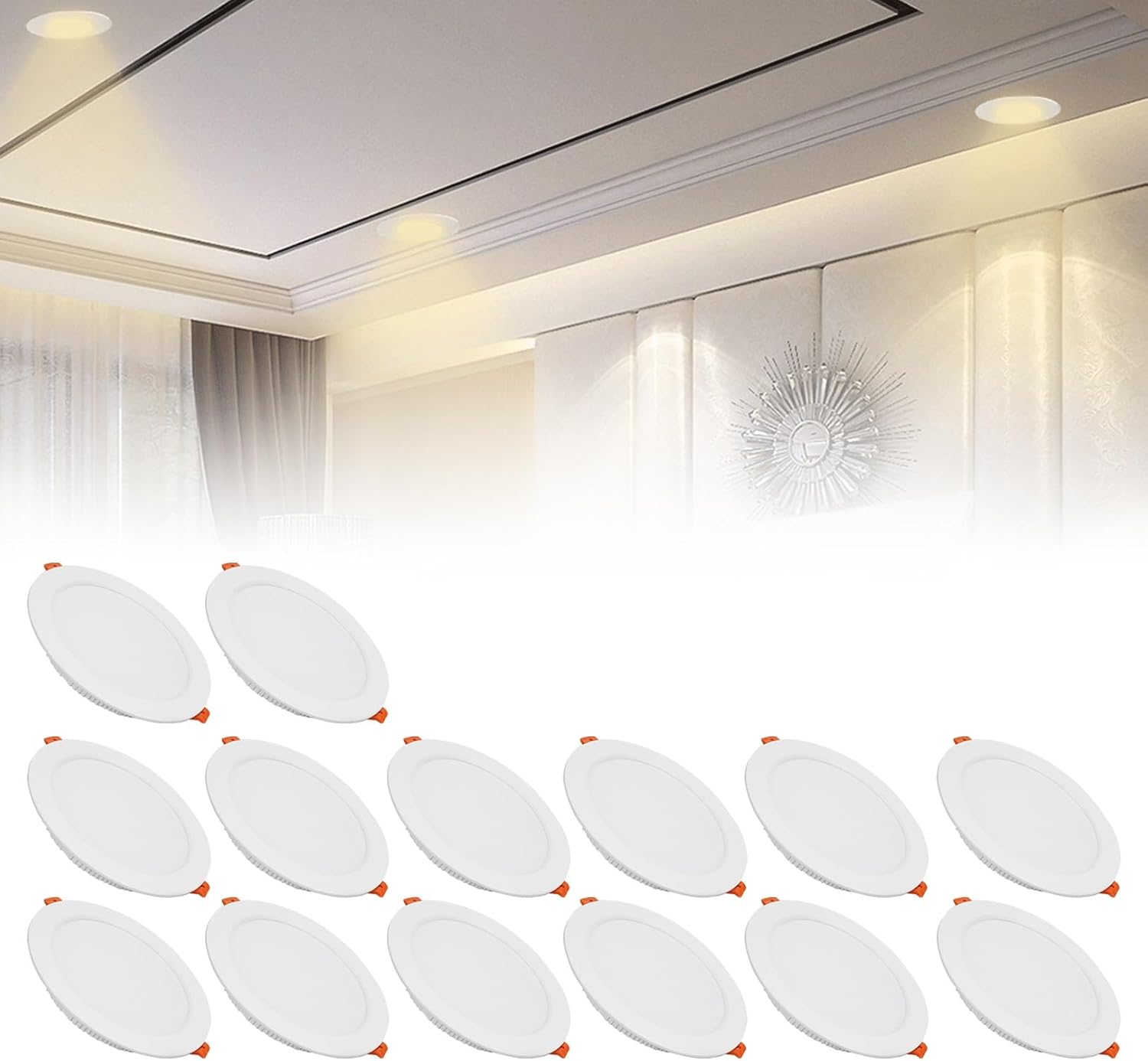 Package includes1 x recessed spotlightsFeaturesPower: 3W/5W/7W/9W/12W/18W/21W/24WInput voltage: AC 110-240VPower Factor: 0.5Color Temperature: Warm White 3000-3500k,Neutral White 4000-4500K,Cold White 6000-6500kDisplay finger: 70LED type: SMD 2835Luminous flux: 240lm/400 Lm/560 Lm/720 Lm/960LM/1440LM/1680LM/1920LMProduct size(LxWxH):68*68*30 mm/100*100*30 mm/108*108*30 mm/118*118*30 mm/145*145*30 mm/170*170*30 mm/180*180*30 mm/230*230*30 mmOpening size:Φ50 mm-Φ55 mm/Φ70 mm-Φ75 mm/Φ80 mm-Φ90 mm/Φ90 mm-Φ100 mm/Φ110 mm-Φ130 mm/Φ150 mm-Φ160 mm/Φ160 mm-Φ170 mm/Φ190 mm-Φ210 mmShell material:Die-casting aluminumMask material:PCBeam angle:120°Protection level:IP21Working temperature: -35℃ to +55℃LED life: >50000 hours