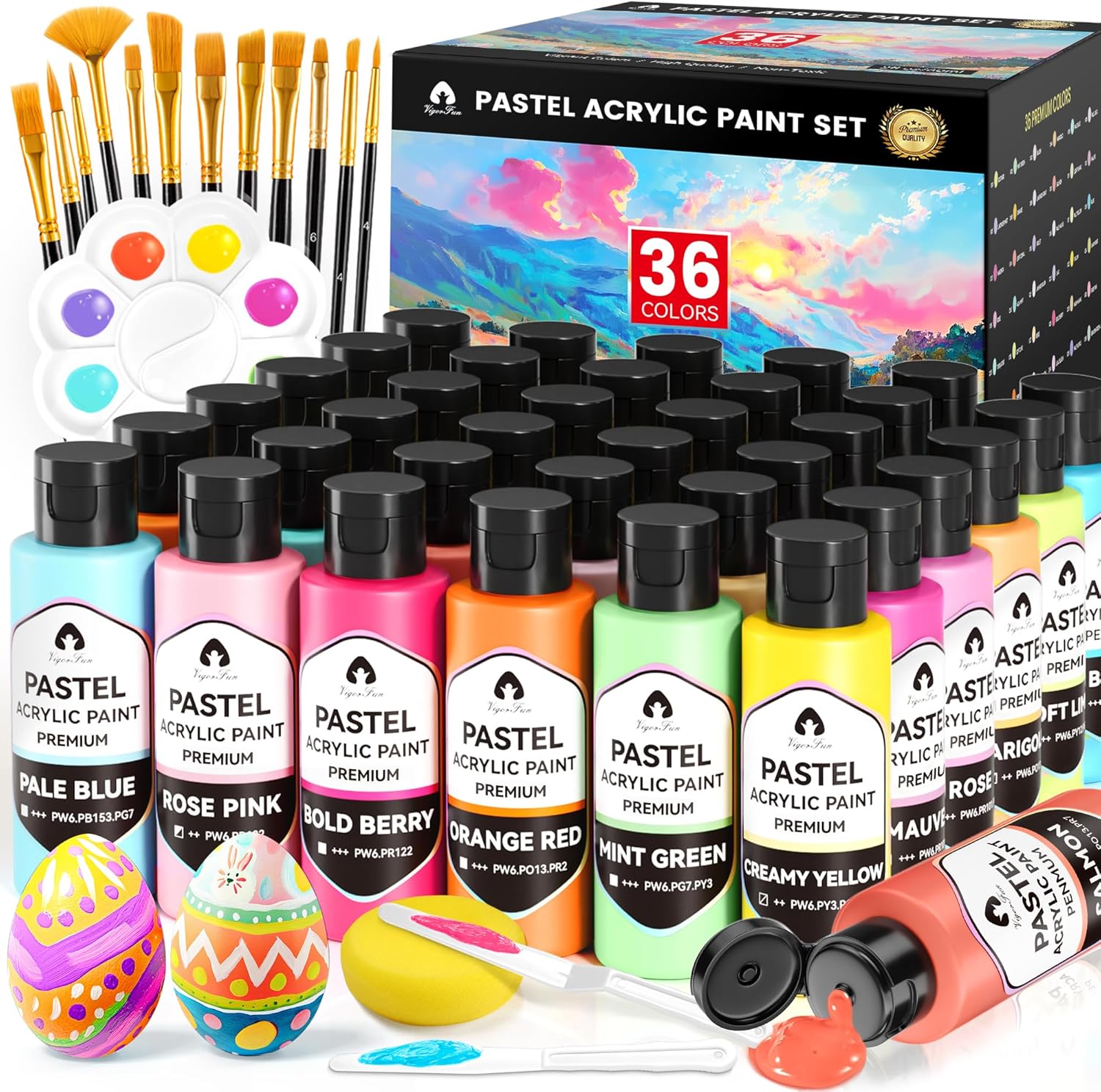 | Included Components | 24 soft pastel colors acrylic paints, 12 professional brushes, 2 painting knives, sponge, palette |