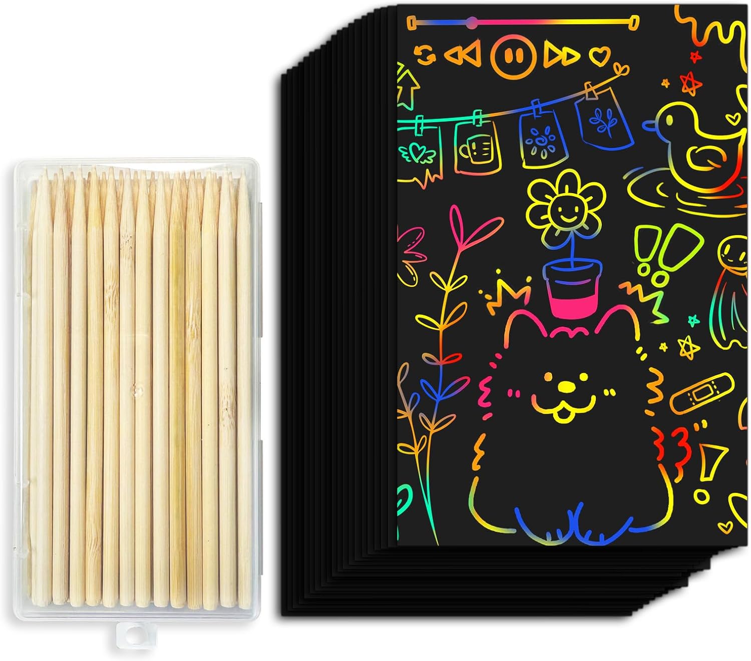 Unleash your child's creativity with this delightful 32-piece drawing stencils . The comprehensive kit includes versatile stencils that enable kids to create endless artistic designs and patterns. The rainbow scratch paper reveals vibrant, multicolored patterns beneath the surface as children scratch away the black coating, making each artwork a magical surprise. Perfect for rainy days, travel entertainment, or creative playtime, this activity kit provides hours of engaging artistic fun. The stencils offer guidance while allowing plenty of room for imagination, making it an ideal gift for young artists. The set helps develop fine motor skills, hand-eye coordination, and artistic expression in a fun, mess-free way. Whether used for creating greeting cards, decorative art pieces, or just doodling, this art set brings joy and entertainment to creative young minds.