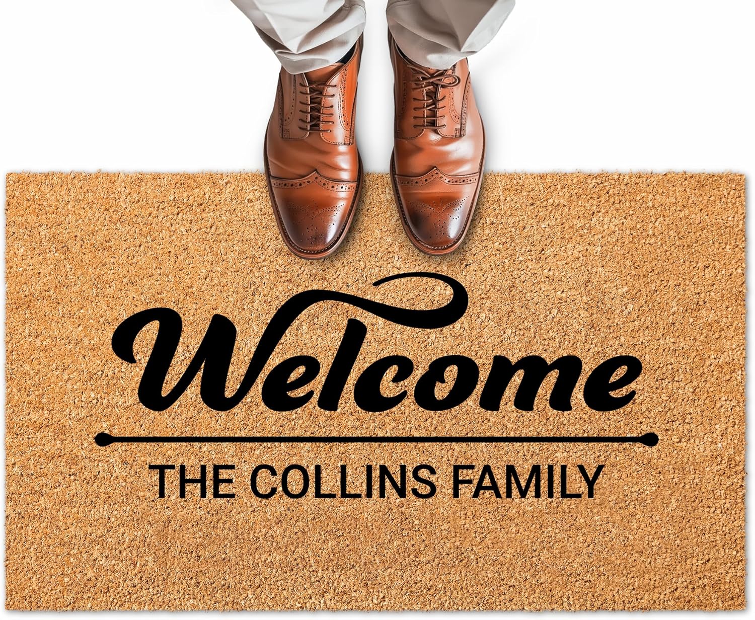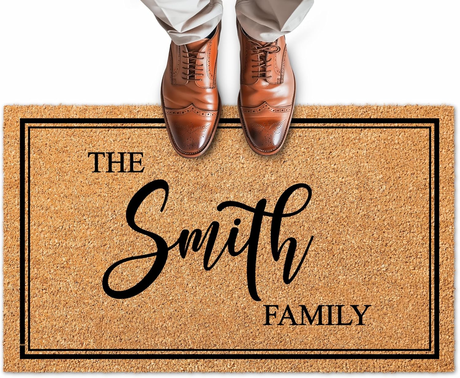 Custom Home Coir Doormat, Personalized Initial Family Name Front Door Mat Indoor/Outdoor Heavy Duty Backing, 24x16" Inches, Coir Material, Made in USA