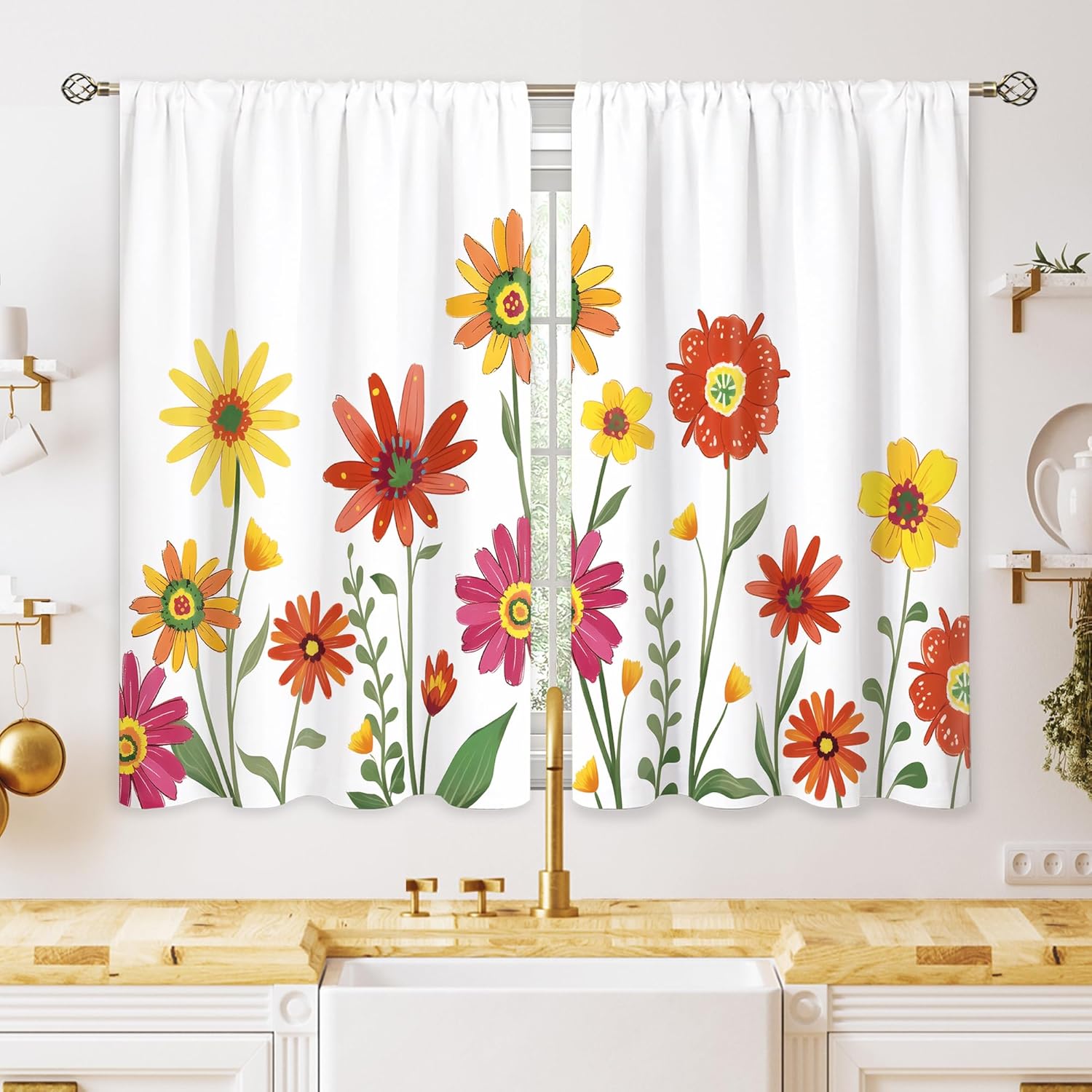 ★Farmhouse teal flower curtains for bedroom living room treatment . Made with quality craftsmanship, window drapes is not easily deformed, fadeless, no pilling. Drapes maintain the perfect amount of privacy, short kitchen curtains gently filter the sunlight. Rustic Floral curtains for bedroom can be paired with farmhouse, rustic, modern or vintage style home decor.★Multi-Purpose: Curtain home decor items are suitable for your living room, dining room, bathroom, bedroom, kids and dorms with high performance in room dimming, thermal insulation, efficiency and privacy protection.★Size Specifications: Each package includes 2 panels curtains, each panel measuring 42"W x 45"L. Easy to install and slide. Rod pocket construct fits most rods in the market.★Warm Tips1. Rustic floral curtains are easy to clean and can be hand or machine washed without worrying about fading or needing ironing. Material is wrinkle resistant, please iron at low temperature if needed.2. Recommended to use a rod with a diameter of 1.5 inch or less.