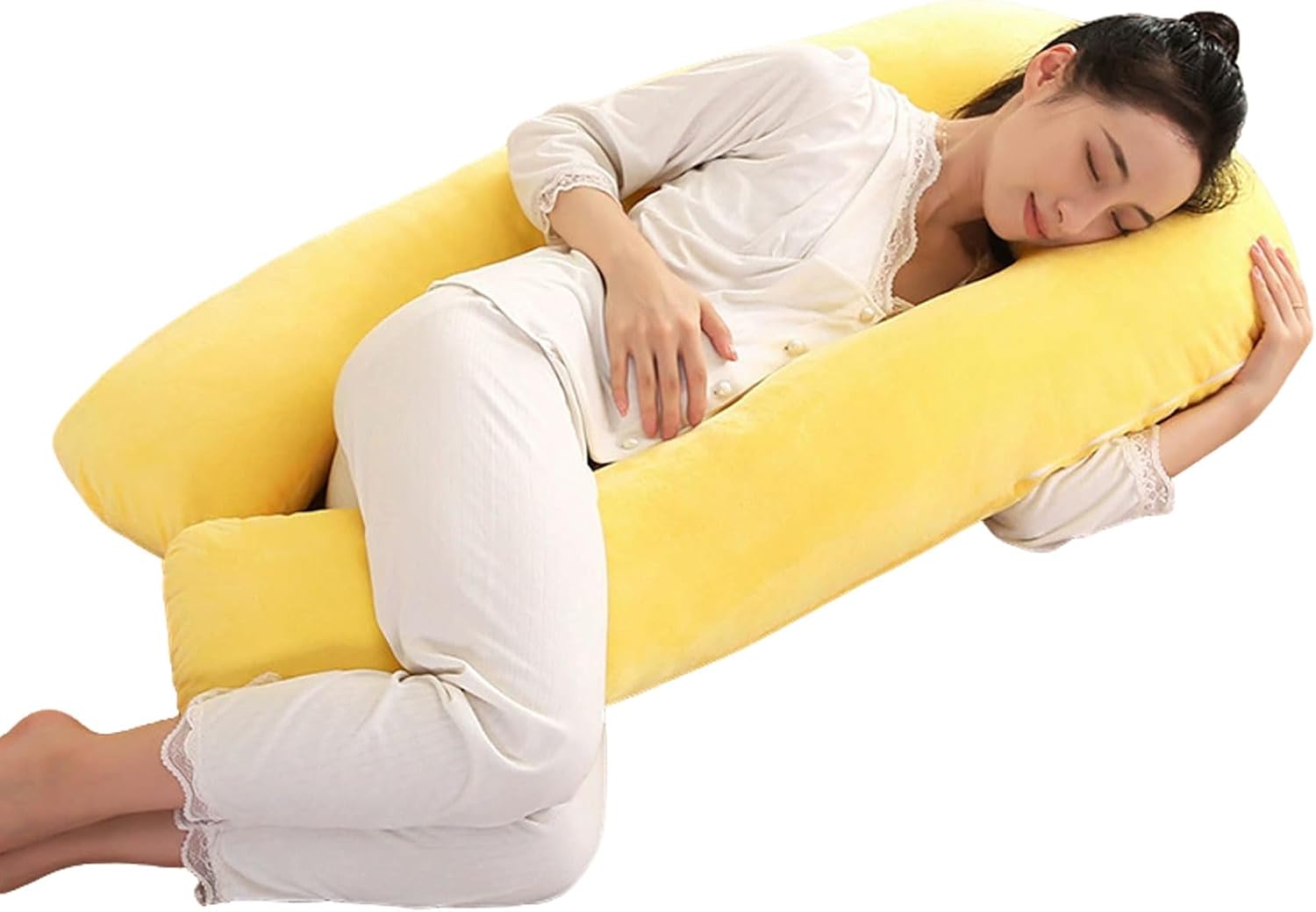 This U-shaped maternity pillow offers comfortable support for the waist, abdomen, and back during rest. The soft crystal velvet cover provides a smooth and cozy touch, helping expectant mothers maintain a relaxed side-sleeping position. Its ergonomic design gently follows the body's curves, offering balanced support throughout pregnancy. Specifications Material: Crystal velvet cover, soft filling Shape: U-shaped Color: Various options available Size: 130x70cm,140x70cm Package Includes 1 × Pregnancy pillow Care Instructions The cover is removable and washable. Machine wash cold on gentle cycle; do not bleach. Tumble dry low or air dry naturally. Store in a dry place when not in use.