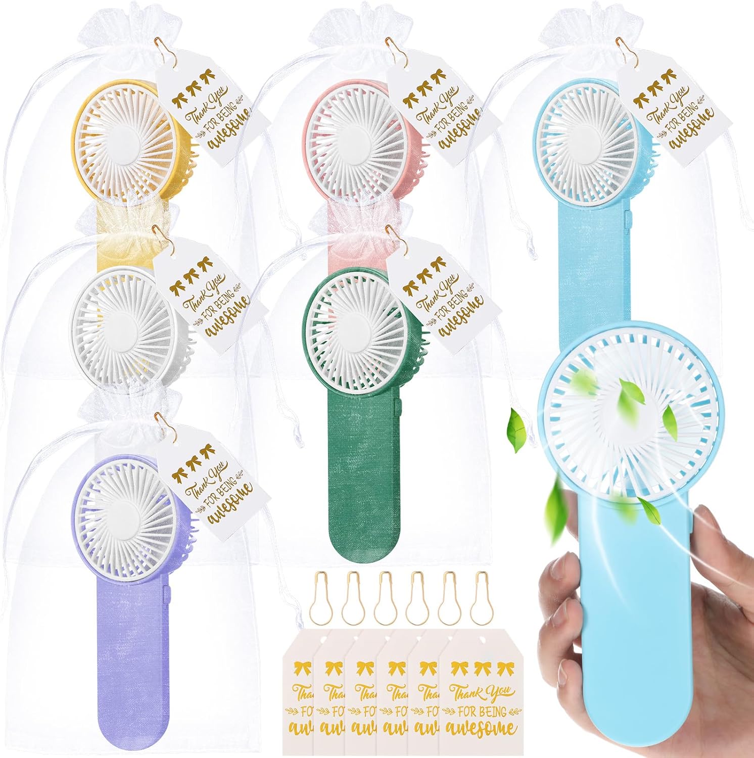 | Included Components | 12 x Mini Handheld Fans, 12 x Organza gift bags, 12 x Thank you gift cards |